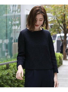 DRESSTERIOR 【入卒・セットアップ可】ツィードボートネックトップス ドレステリア シャツ/ブラウス シャツ/ブラウスその他 ネイビー【送料無料】